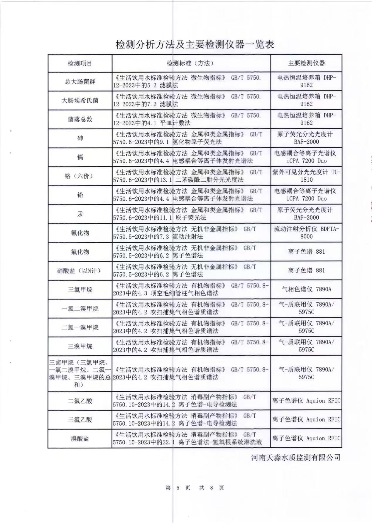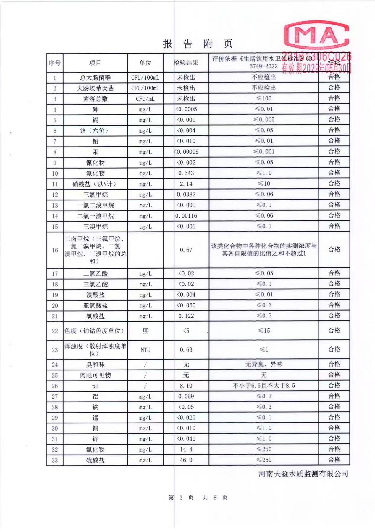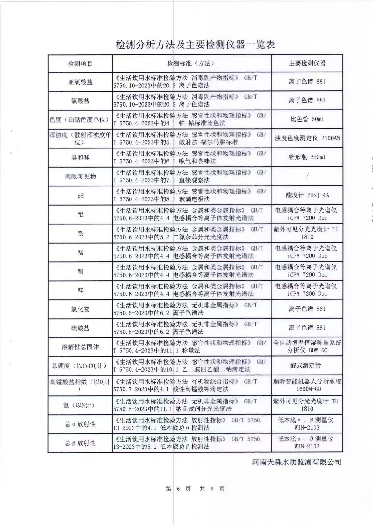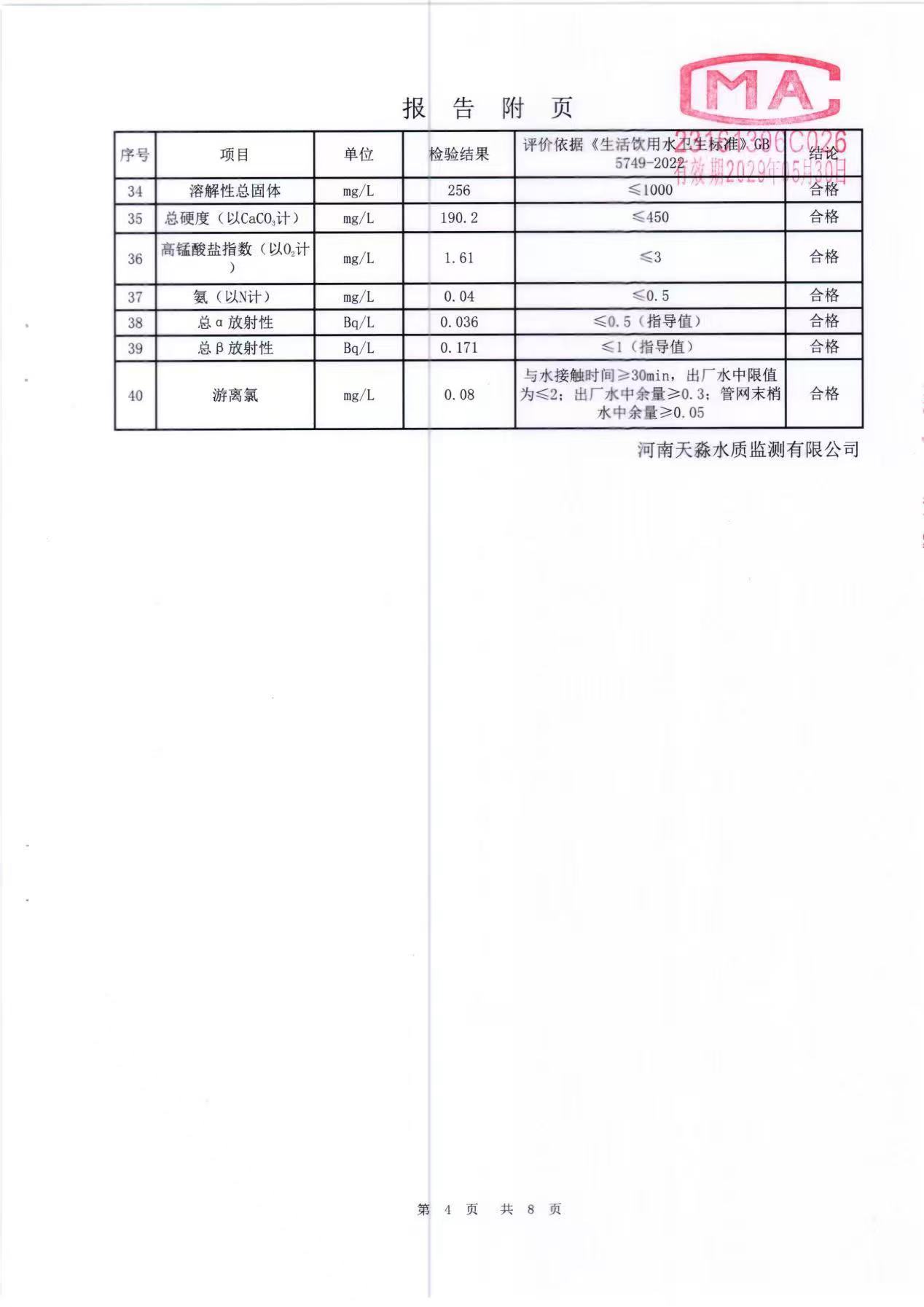 淼源水务10月份末梢水水质检测报告