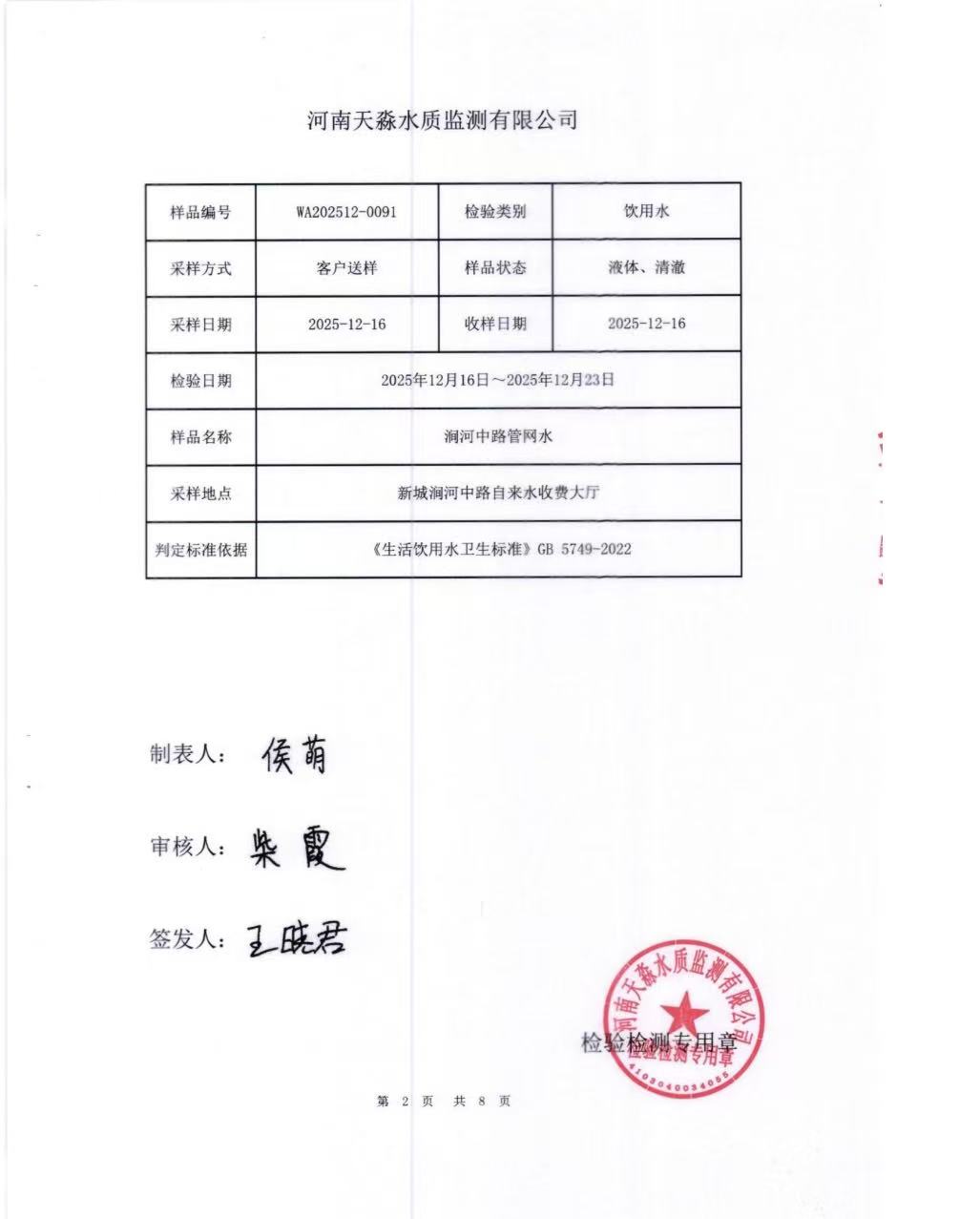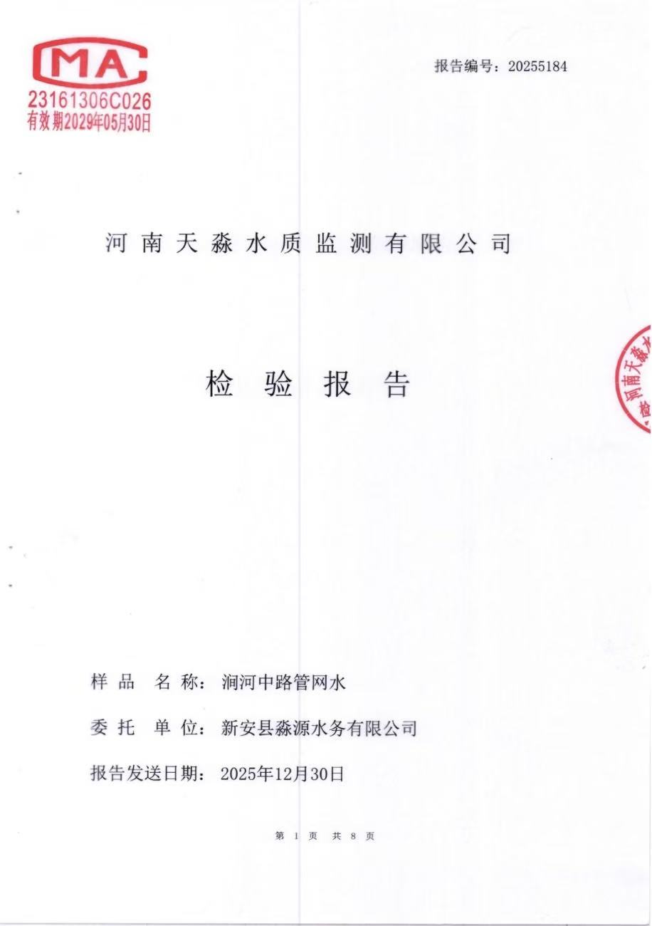 淼源水务12月份官网水水质检测报告